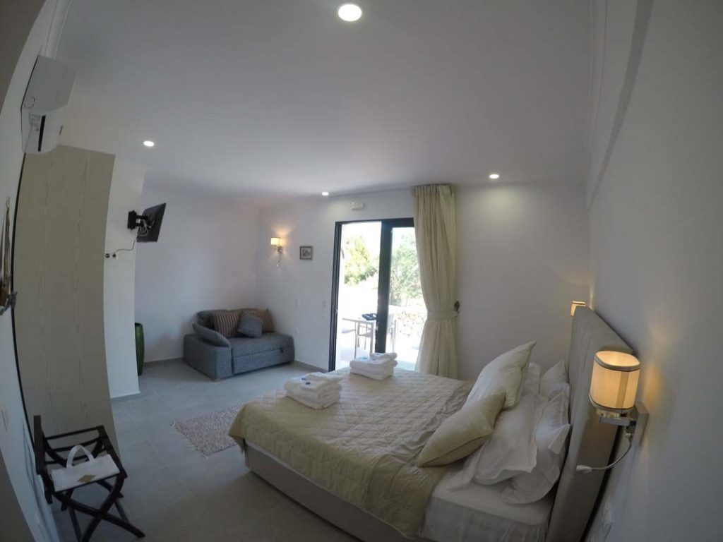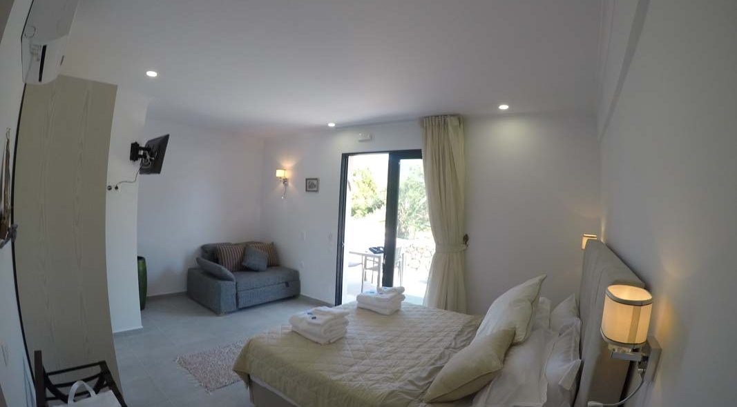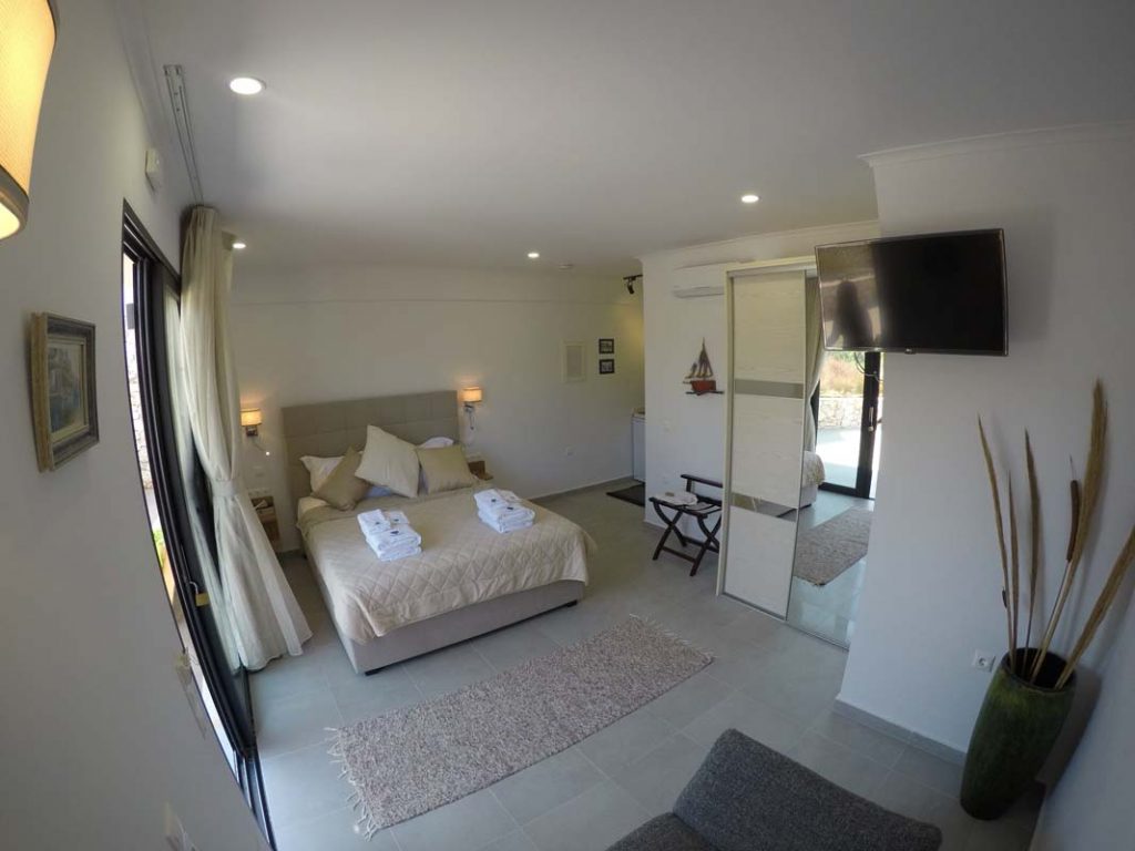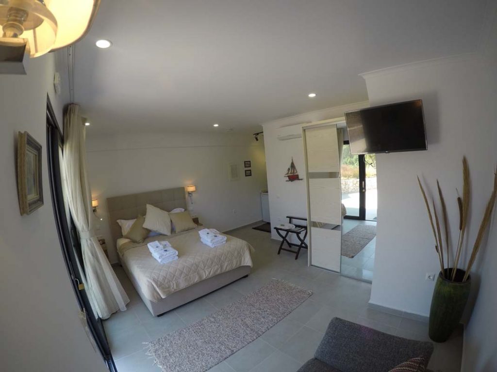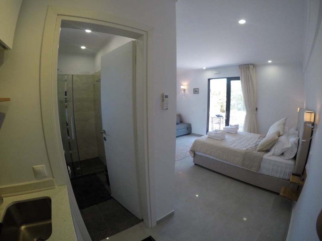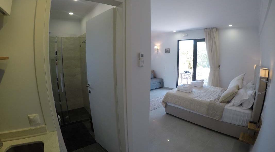 Studio Kalypso is a brand new studio on the ground floor of Villa Del Mar, a few steps from the swimming pool. This studio is ideal for two people. It consists of a double bed, a sofa, a kitchenette and a comfortable bathroom.