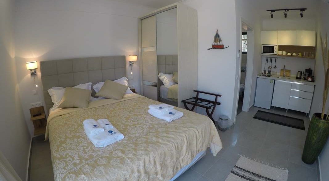 Studio Poseidon is a comfortable studio on the ground floor of Villa Del Mar, a few steps from the pool. This romantic getaway is the ideal choice for couples. It consists of a large double bed, a kitchenette and a modern bathroom.